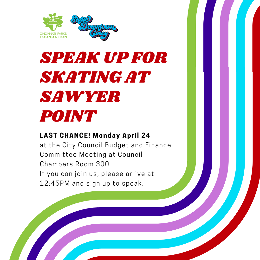 CALLING ALL ADVOCATES! Your LAST CHANCE to Speak up for Skating at Sawyer Point is Monday April 24